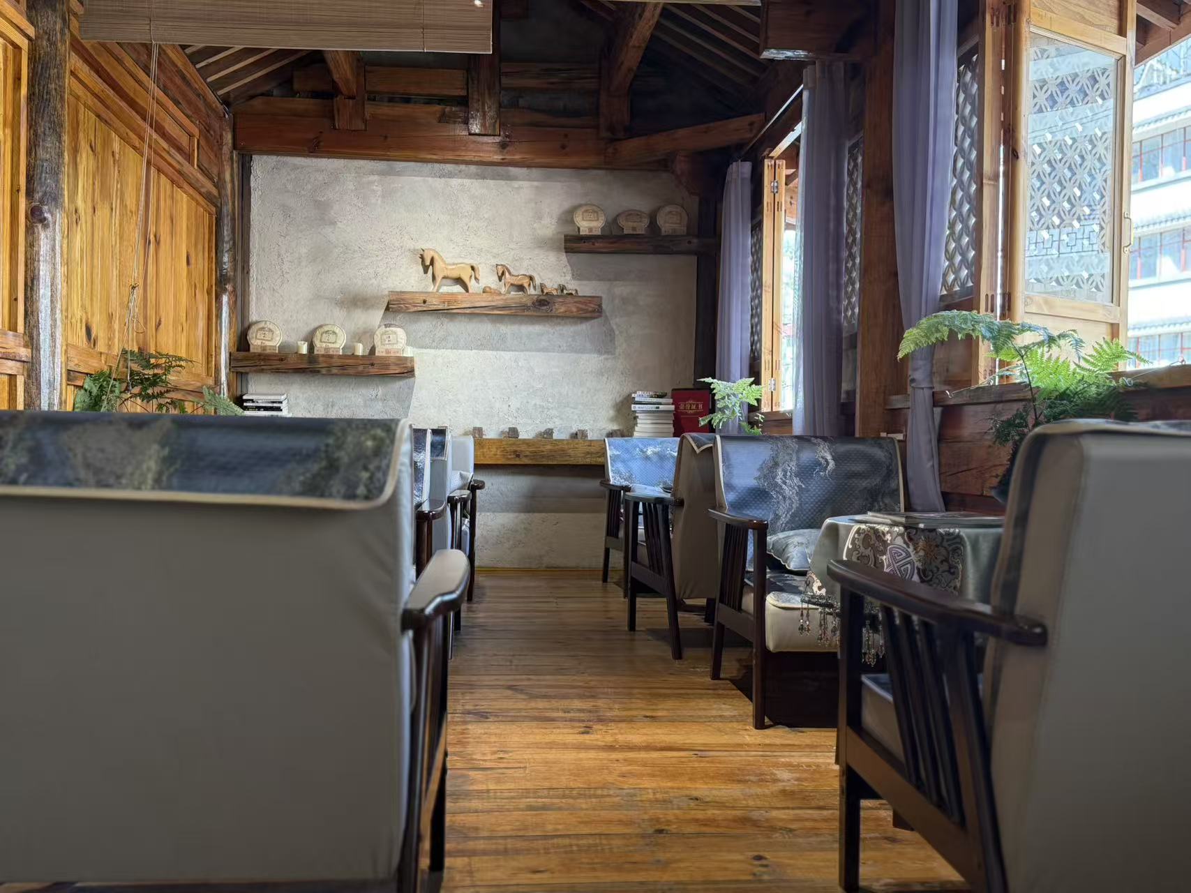 在这里,陈年普洱在古木茶台上被温柔唤醒,醇厚的茶汤泛着琥珀光泽,散发着时光沉淀后的木质香与蜜韵;而来自云南本土的咖啡豆,则在原木桌上经手工冲煮,飘散出带有果酸与坚果风味的浓郁香气。二者皆源自同一片土地,却在木香萦绕的同一空间内,以不同的语言诠释着风土的厚度。