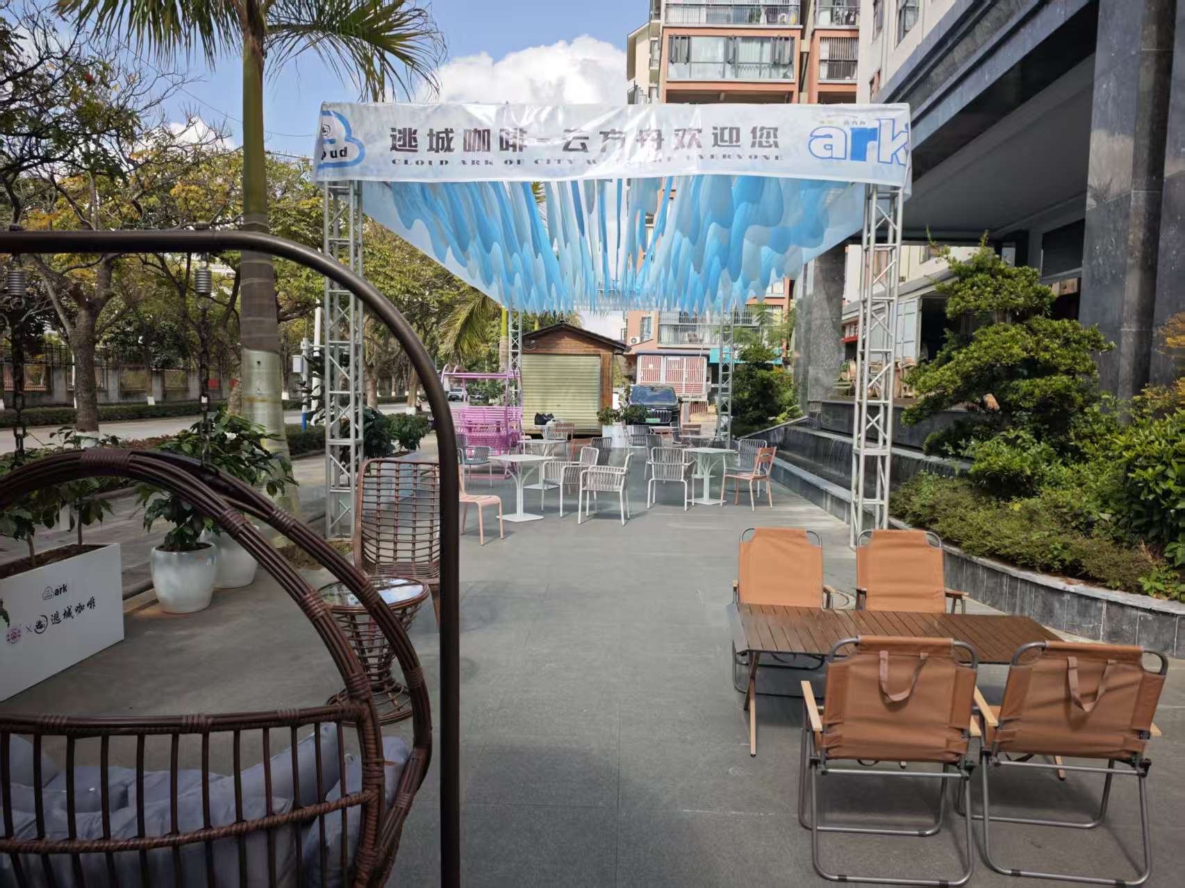 逃城咖啡的「云方舟」藏着独有的浪漫,这座移动玻璃房外,风动纱幔是点睛之笔 —— 风拂过时,纱幔轻轻摇曳,把阳光剪成细碎的光斑,落在木质座椅和咖啡杯上。 室外区域被绿植环绕,远处是连绵的山脉,空气里飘着咖啡与茶香的混合气息。点一杯手冲,坐在纱幔旁的座位上,看风掀起纱幔的一角,听树叶沙沙作响,偶尔有庄园的风带着草木香拂过脸颊。在这里,不必追赶时间,只需让身心随纱幔一起,在普洱的山野间慢慢放松。云方舟的室外,是逃城给都市人的治愈角落,纱幔轻摇间,所有烦恼都被风吹散。